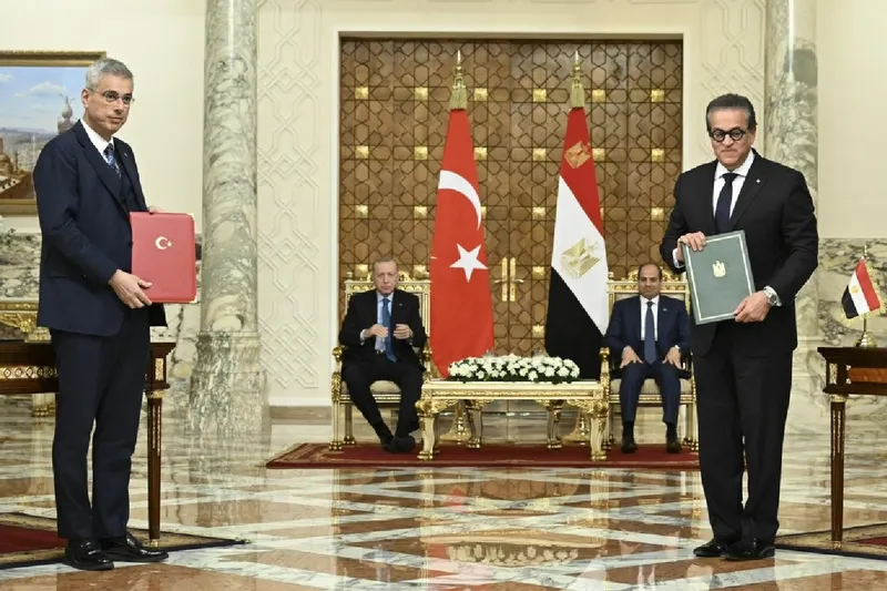 Sağlık Bakanı Kemal Memişoğlu, Cumhurbaşkanı Recep Tayyip Erdoğan ile Mısır Cumhurbaşkanı Abdülfettah es-Sisi’nin katılımıyla gerçekleştirilen törende, Mısır Sağlık Bakanı Khaled Atef Abdelghaffar ile birlikte Türkiye İlaç ve Tıbbi Cihaz Kurumu ve Mısır İlaç Otoritesi arasında sağlık alanında iş birliğini artıracak bir mutabakat zaptı imzaladıklarını duyurdu.