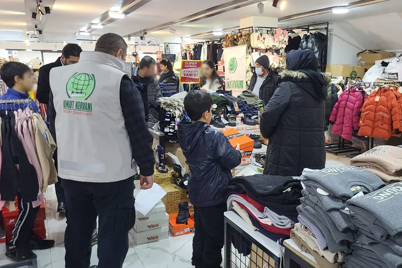 Hayırsever bir iş insanının destekleriyle yürütülen organizasyon kapsamında, ihtiyaç sahibi çocuklar aileleriyle birlikte mağazaya götürüldü.