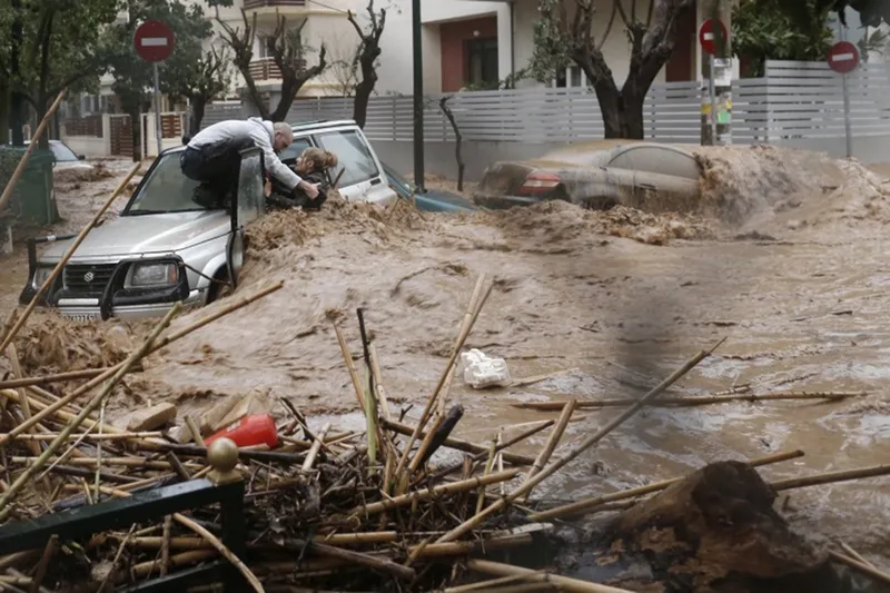 Yunanistan'ı etkisi altına alan şiddetli yağış çok sayıda bölgede sele yol açtı.